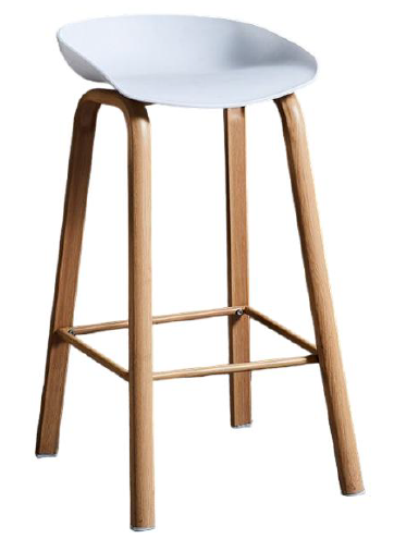 Nordic White Molded Bar Stool with Natural Wood Legs & Fixed Base